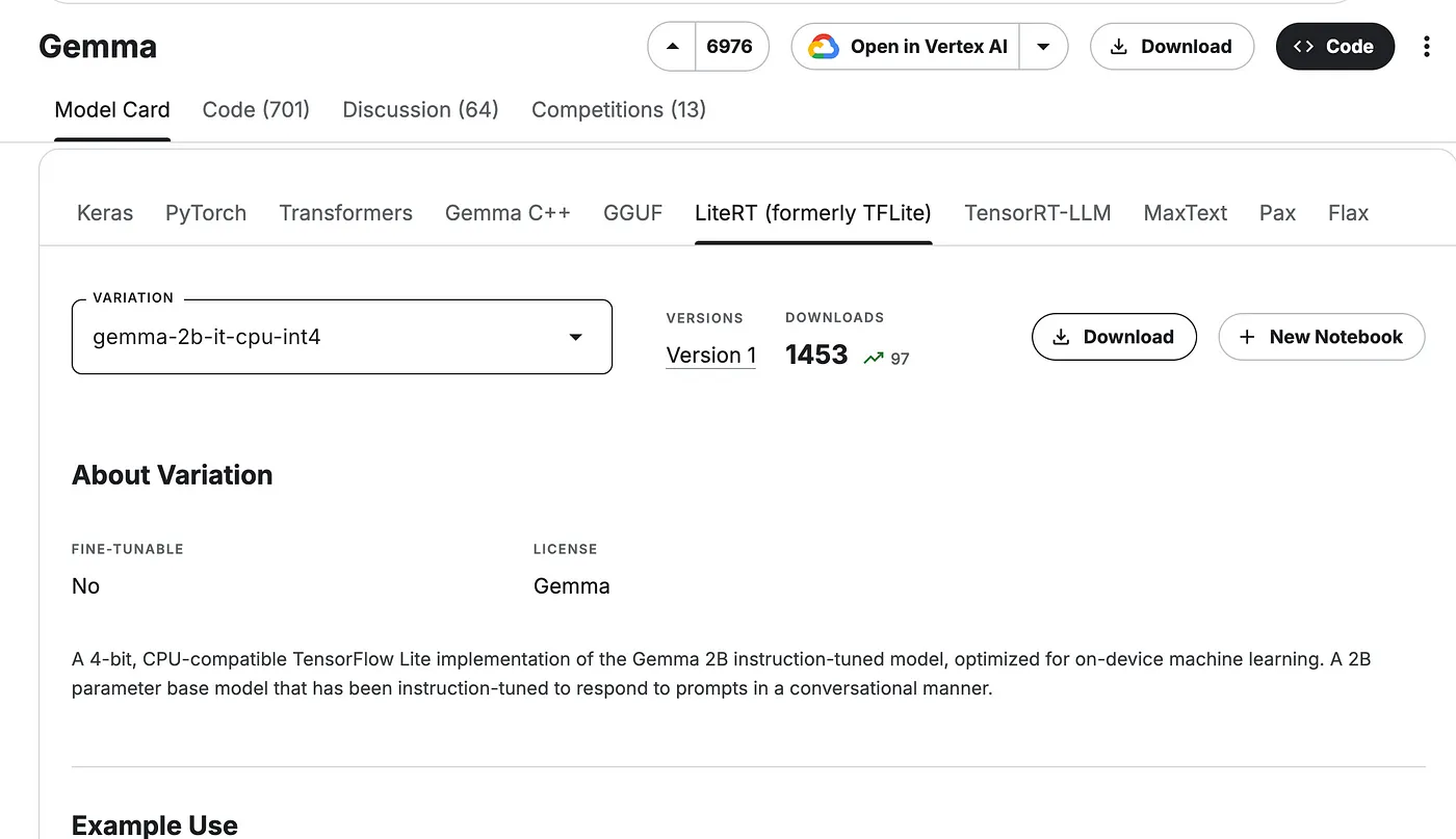 Go to the above link and select LiteRT section as shown in the image below